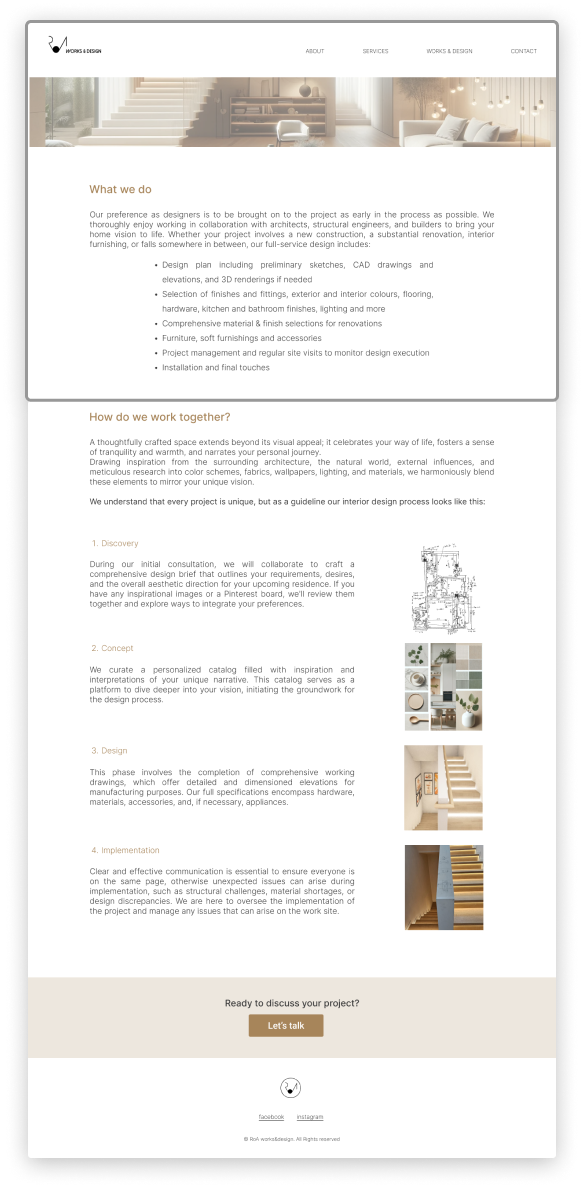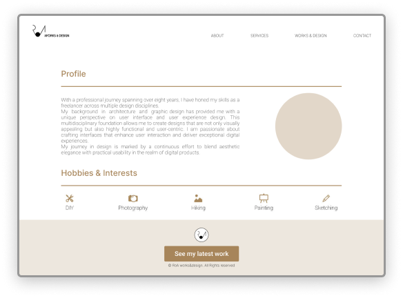 The challenge was to create a portfolio website that would attract clients who appreciate the designer's style, encapsulated in the motto "minimal by design, sustainable by nature." The goal was to effectively communicate this philosophy and showcase the designer's work to appeal to the right audience.